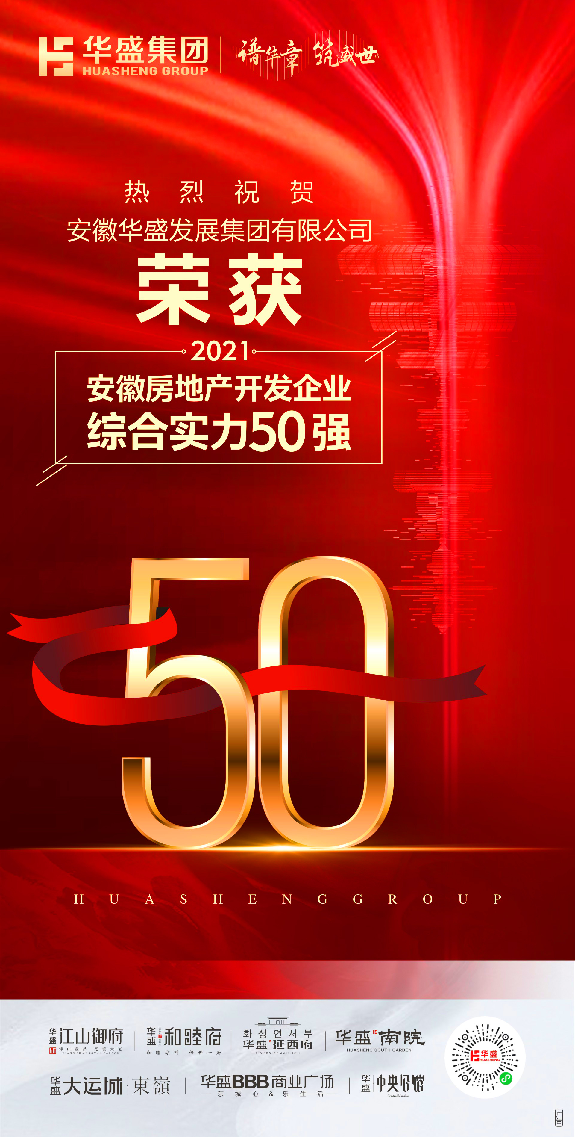 【不忘初心,载誉前行】华盛集团荣获2021年度“安徽房地产开发企业综合实力50强”荣誉称号