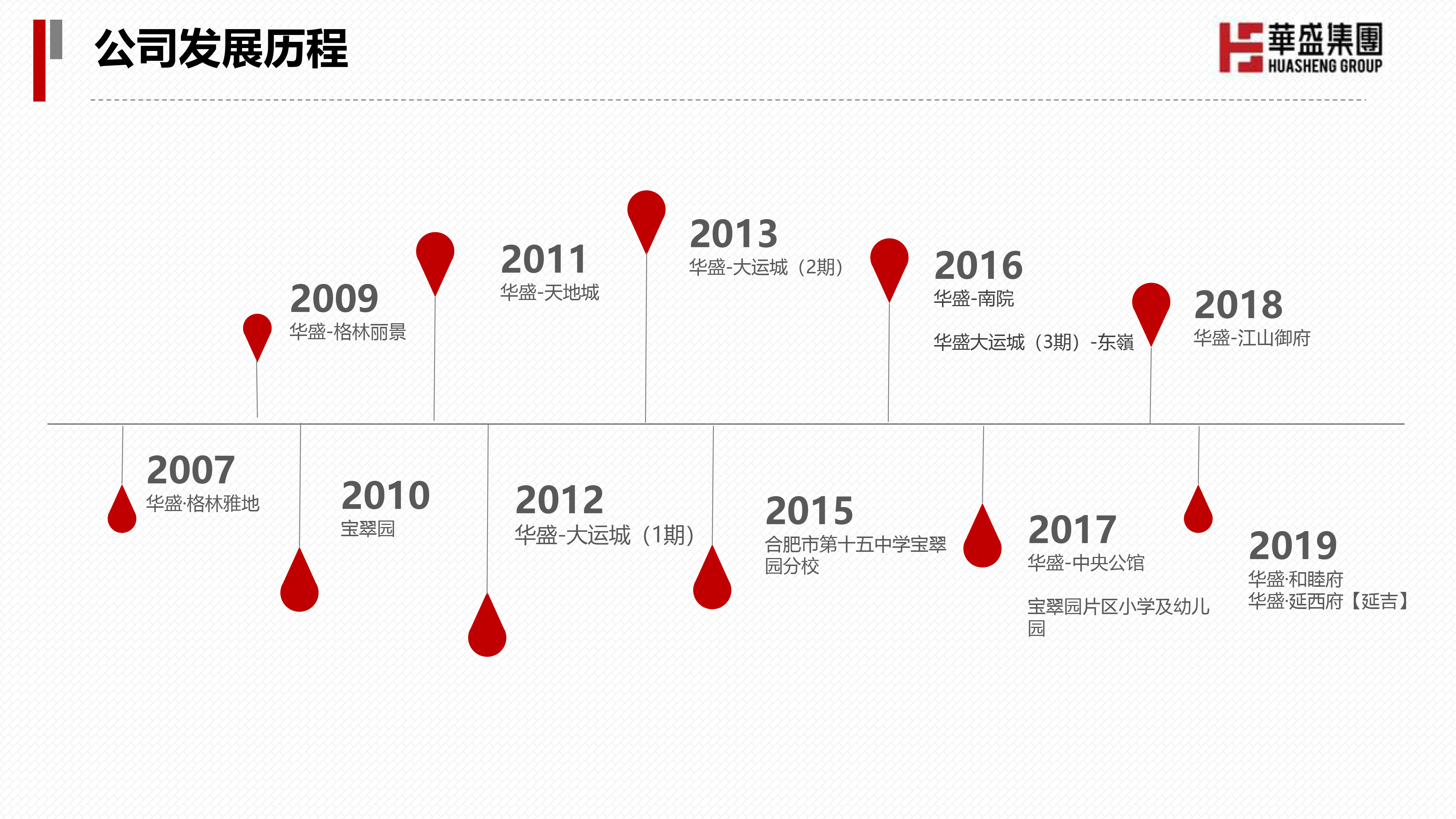 栉风沐雨守初心,奋勇拼搏担使命。华盛集团匠心十五载,各分子公司累计注册资本7亿元,年营业额 30多亿元。自2006年以来,华盛集团先后投资开发了华盛•格林雅地、华盛•格林丽景、宝翠园、华盛国际大酒店、华盛·大运城、华盛·BBB商业广场、华盛·南院、华盛·东嶺(大运城三期)、华盛·中央公馆、华盛·江山御府、华盛·和睦府、华盛·延西府等多个项目,遍及合肥、肥东、巢湖、庐江、延吉等地,总开工、立项面积逾300万方。