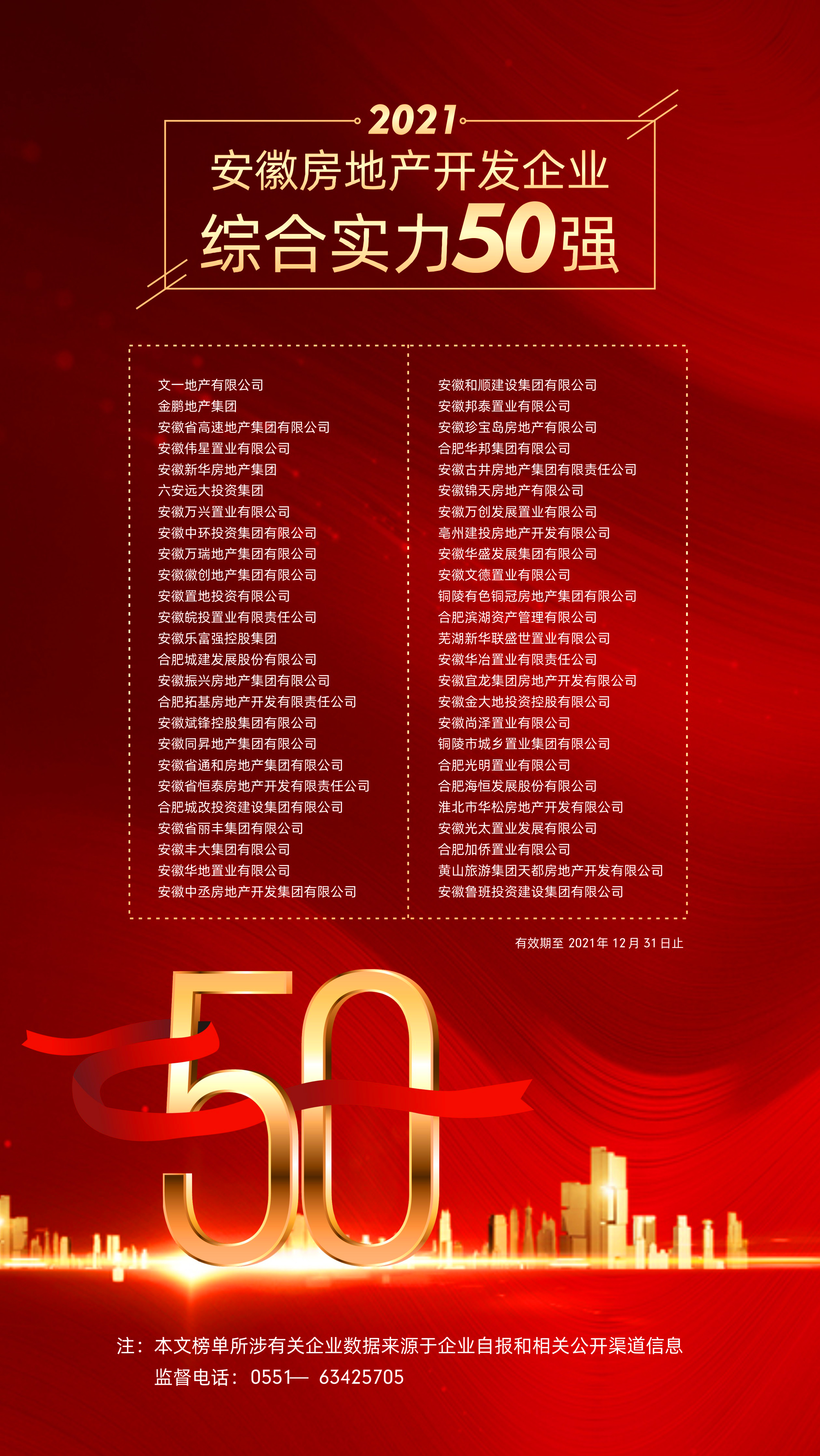 附:2021年度“安徽房地产开发企业综合实力50强”名单