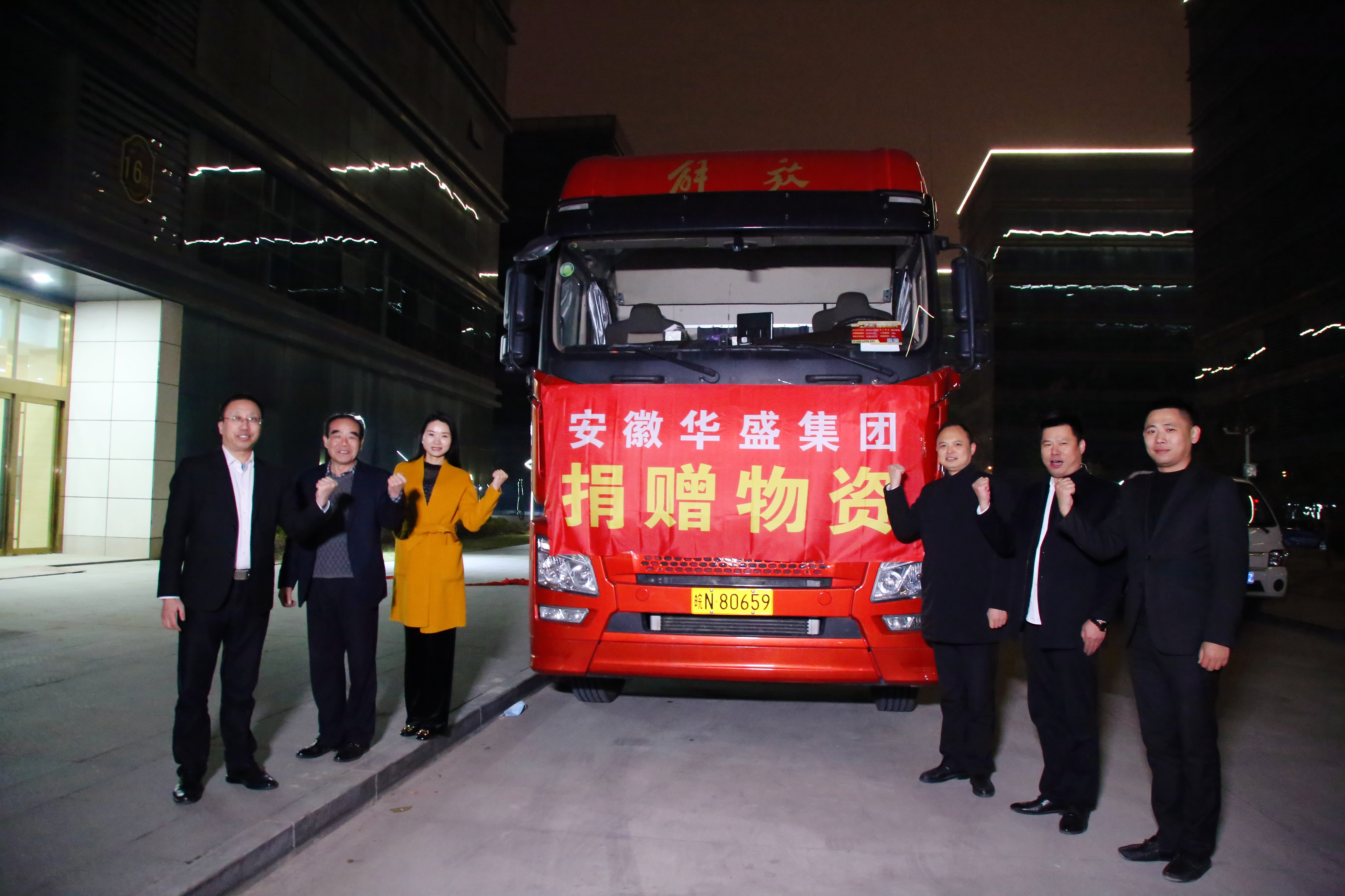 华盛集团余安云总裁、王辉副总裁等领导在捐赠发车现场合影